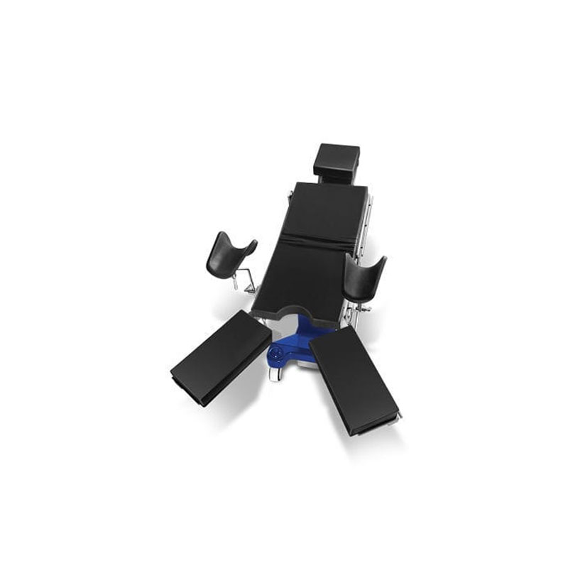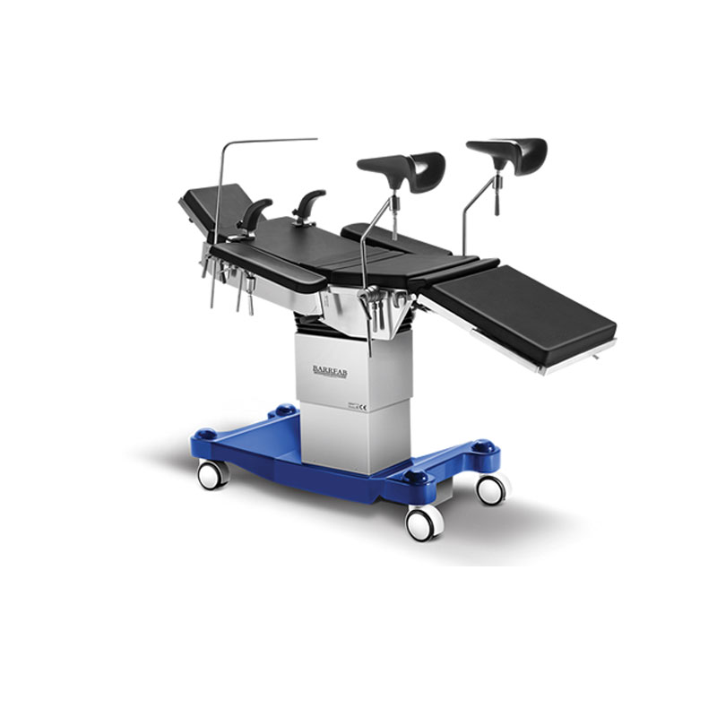 DESCRIPCIÓN Mesa de Cirugía Universal, Tablero Radiotransparente, Tablero de 6 secciones, Ajuste de altura 300mm, Desplazamiento Longitudinal, Respaldo, Laterales, Trendelemburg, Freno, Accionados por control. Pierneras divididas desmontables y esparrancables. CARACTERÍSTICAS